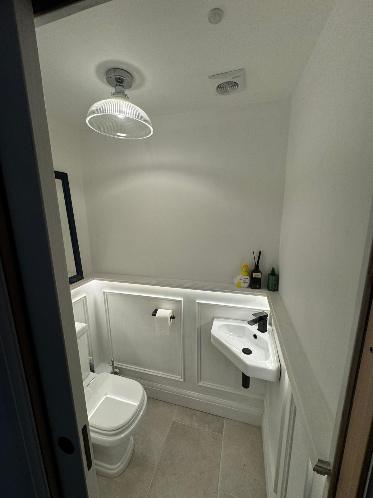 This project included a ground, first-floor, and loft conversion, complete bathroom renovations, and structural work. The transformation maximised space and light, creating a more functional and modern home.